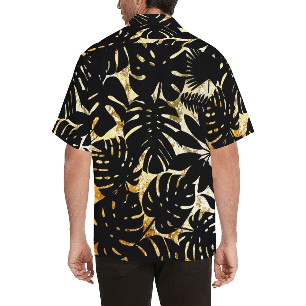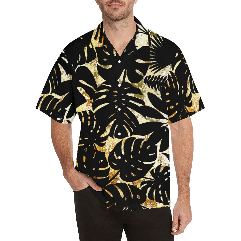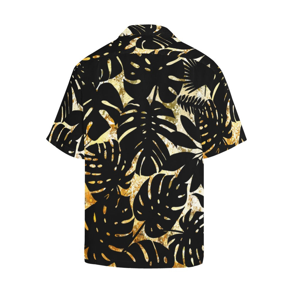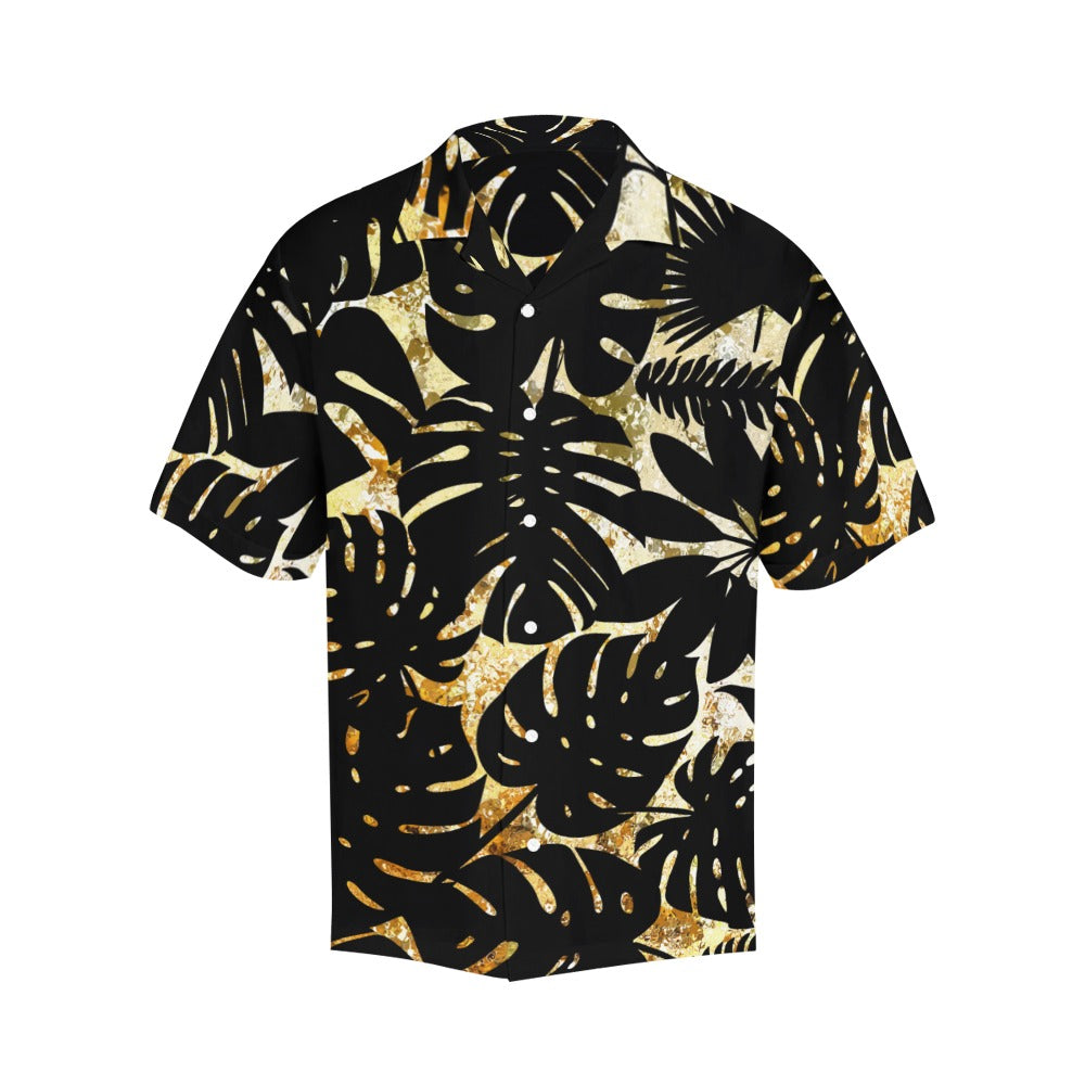 Black Tropical Leaves Pattern Shirt in Sizes up to 5XL